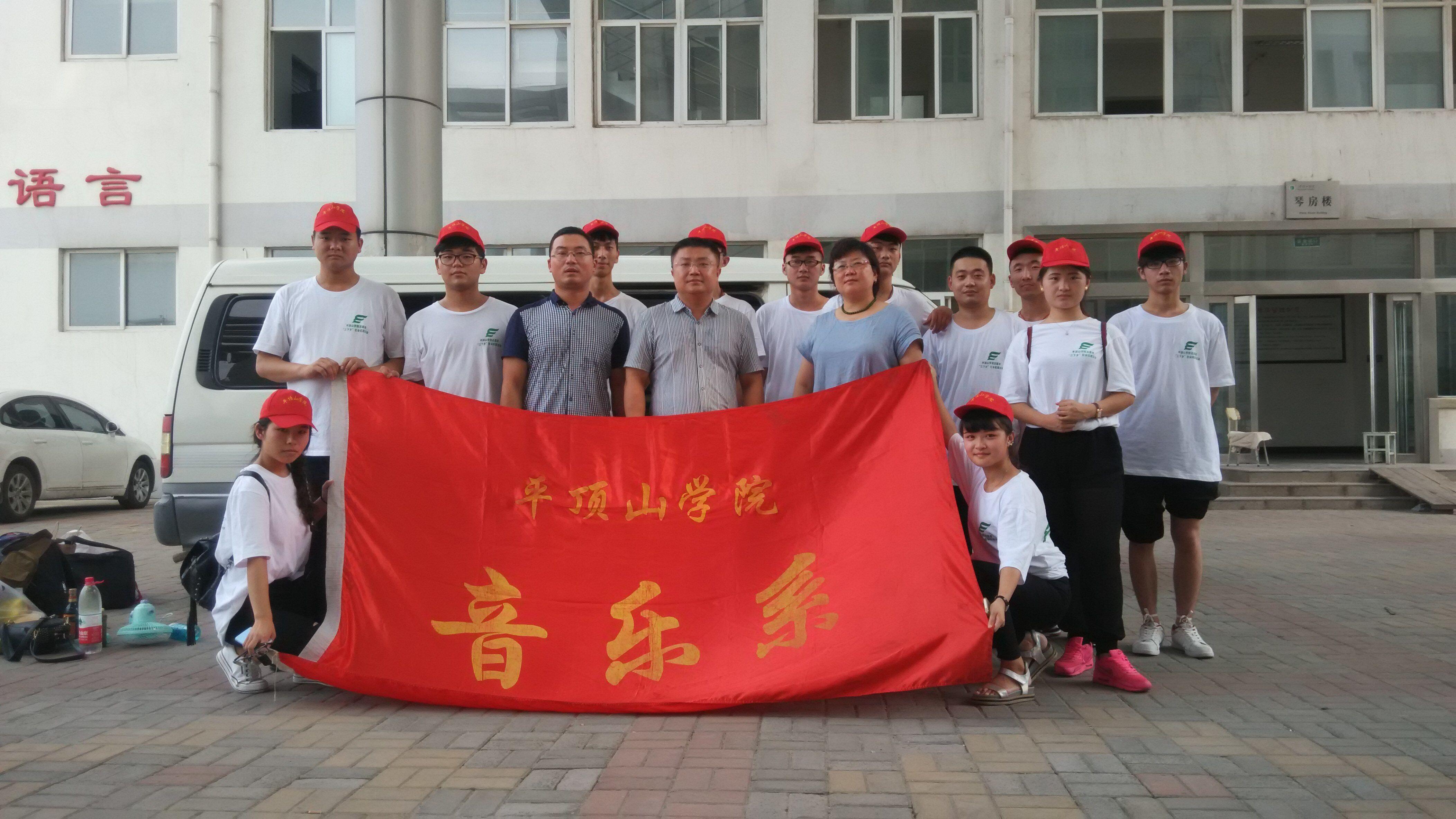 七月十三日下午,身着统一的服装,头戴印有“9728太阳集团”标志小红帽的十余名“三下乡”志愿者怀着激动的心情,参加了此次出征仪式。同时音乐系党总支书记高磊同志,音乐系主任刘伟同志,以及带队老师谢晓飞和李鹏玺也来到仪式现场,系党总支书记高磊动员讲话。他首先代表系里全体师生向即将奔赴服务地的老师和同学们表示亲切的问好和良好的祝愿。