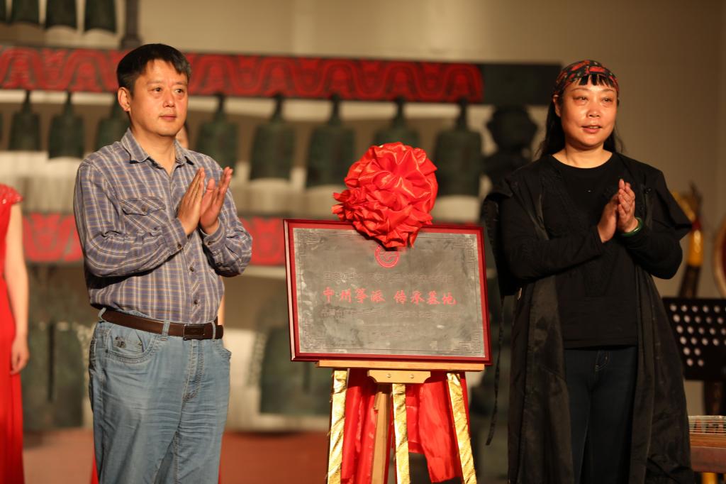 在热烈的掌声中,李波、高珊珊共同为“中州筝派”传承基地揭牌。