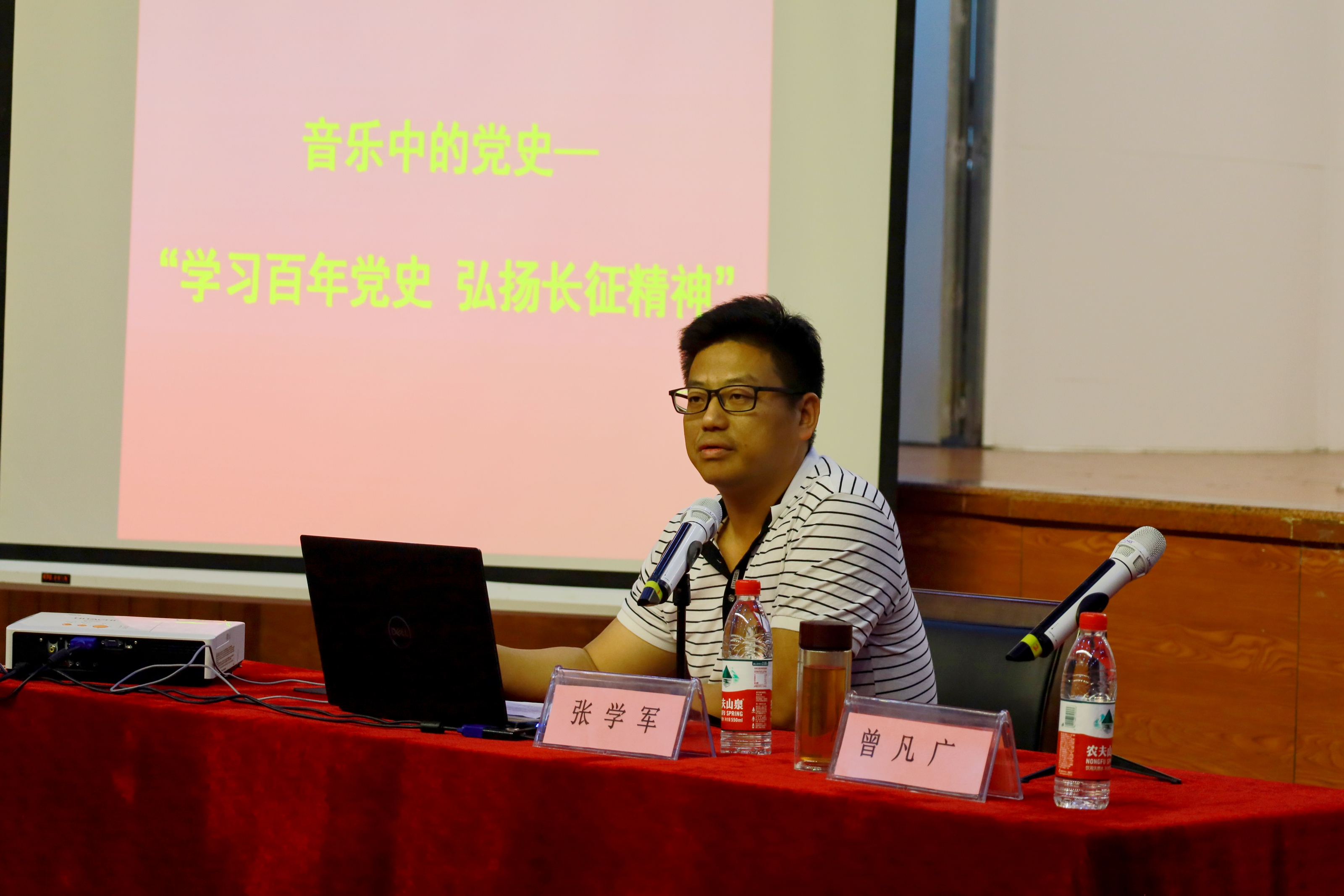 为迎接中国共产党百年华诞,扎实开展党史学习教育,5月13日下午,太阳成集团tyc9728在音乐厅开展了一场以“学习百年党史 弘扬长征精神”为主题的党日活动。马克思主义学院张学军博士受邀担任主讲,太阳成集团tyc9728全体党员参加了此次活动。