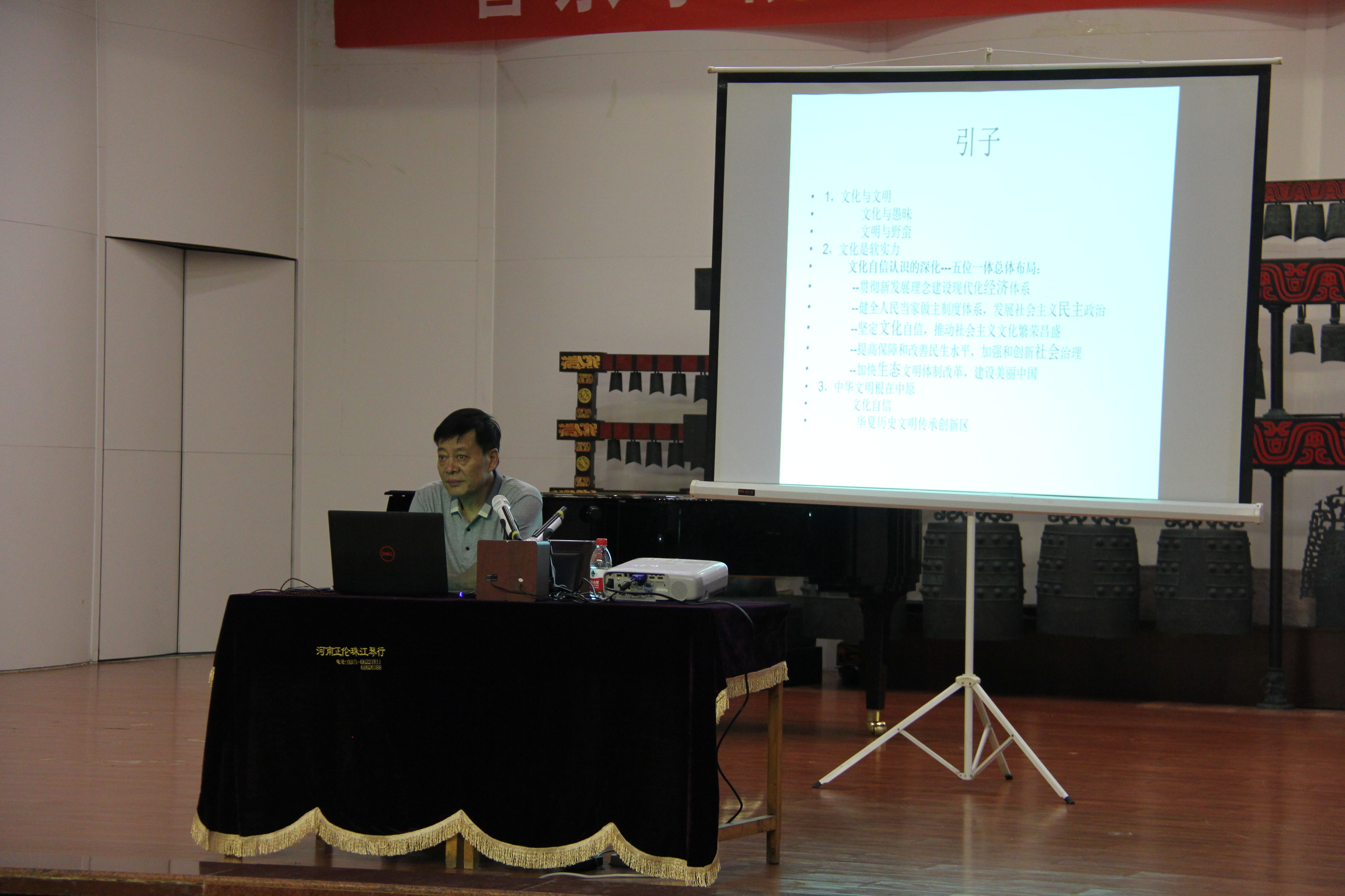 张清廉教授从人类文明与文化的概念为切入点,从伏牛山的地理位置、人类起源等地缘历史方位,确证平顶山市这座历史新城的前世今生以及与伏牛山文化圈的关系,详细地讲解了古应国的历史发展脉络以及在历史长河中所承载的厚重瑰丽的历史文化底蕴。然后,从新时代背景下中原礼乐文化的传播与演变,黄河文明与文化研究,当下文化市场、文化产业发展的使命以及作为平院音院人的使命担当谈起。最后,张清廉希望太阳成集团tyc9728全体师生能够立足现实、面向未来,团结一心、砥砺奋进,要以努力挖掘、传承及创新音乐文化和培养高素质复合型音乐人才为使命,扎实工作,埋头苦干,凝聚合力,打造品牌,助推学校“十四五”事业发展,打造区域高水平应用型大学,高质量服务平顶山区域经济社会发展。