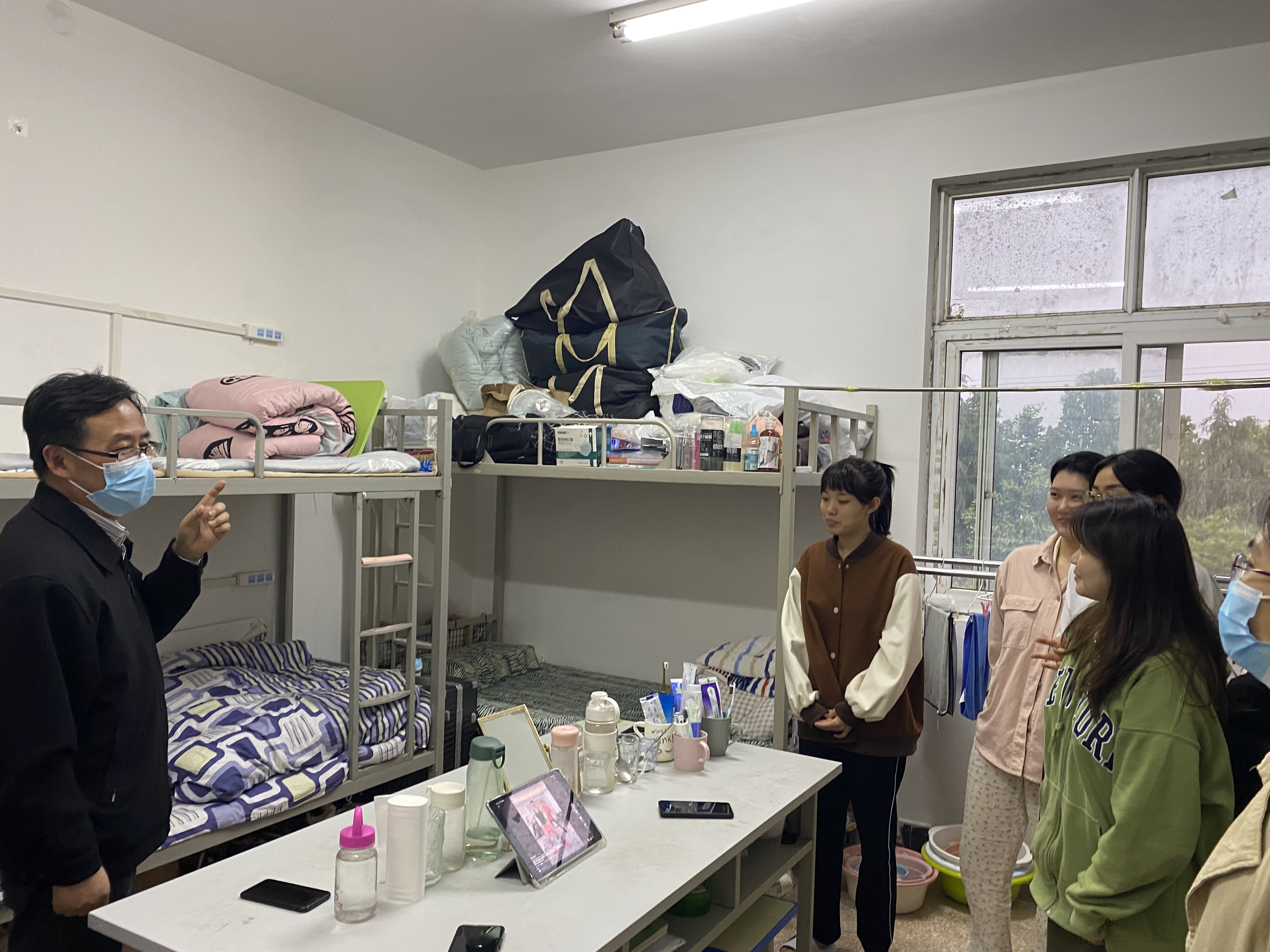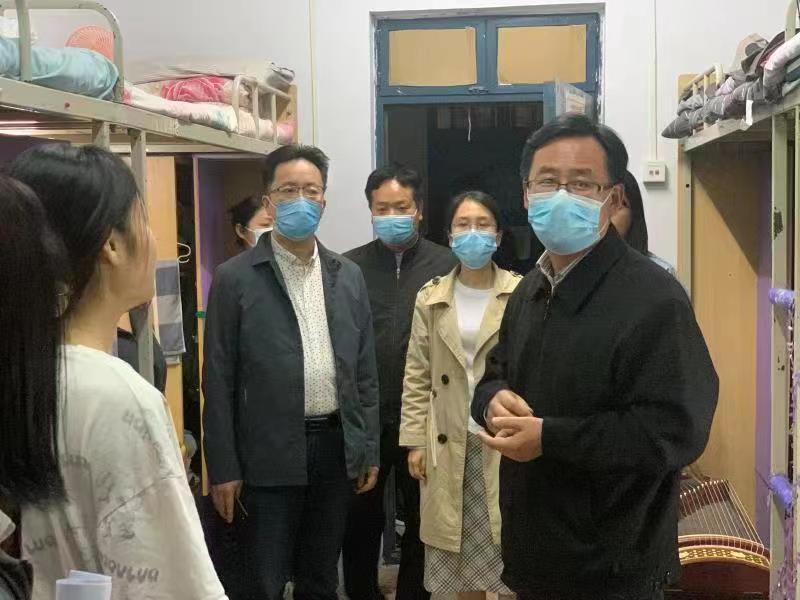 在当前我市严峻的疫情形势下,为进一步贯彻落实学校疫情防控工作会议精神,深入了解学校静态管理期间学生的心理状态,引导学生健康、安全、有序地学习、生活,5月12日晚,我校副校长侯延民在太阳成集团tyc9728负责同志的陪同下深入宿舍,与太阳成集团tyc9728学生进行亲切交谈。