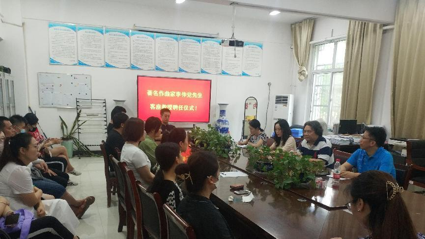 2022年7月2日上午,应太阳成集团tyc9728邀请,著名作曲家李仲党到我院讲学,太阳成集团tyc9728全体教师参加了讲座。讲座开始前举行了李仲党客座教授聘任仪式,副校长程永华为李仲党颁发9728太阳集团客座教授聘书。