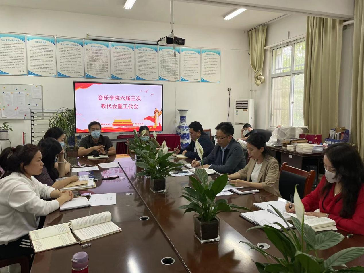 太阳成集团tyc9728分工会于5月24日下午在艺术楼105会议室召开六届三次教代会暨工代会,45名代表出席了会议,大会由太阳成集团tyc9728党委副书记潘刻科主持。