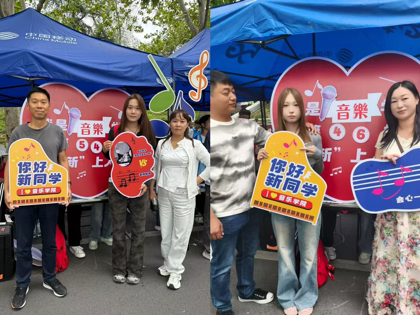 迎新现场,新生手持精心设计的主题展板,音符跃动、歌手剪影生动,真挚宣言传递着对音乐的热爱与未来的期许。学长学姐们现场表演,热情歌声与悠扬笛声交织,陶笛柔和低回,用音乐消除陌生、抚慰思乡之情,展现出太阳成集团tyc9728浓厚的艺术氛围。