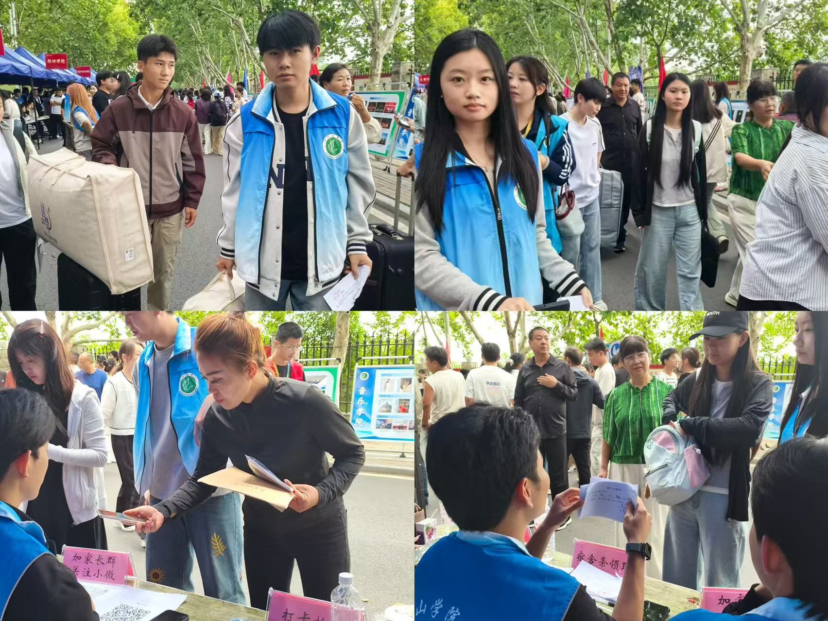 在热闹的场景中,志愿者成为一道亮丽风景。他们主动帮助新生搬运行李,耐心指引路线,细致解答各类入学问题。佩戴音符徽章的志愿者们以热情服务诠释奉献精神,用实际行动传递学院温度,为迎新工作提供了坚实保障。