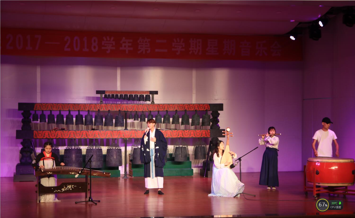 星期音乐会在唯美动听的器乐合奏《青花瓷》中拉开帷幕;诗朗诵《青春万岁》,朗诵者的青春气息感染全场;歌曲表演《波妞》把我们带入童话音乐世界之中;群舞《我是不是你最疼爱的人》,离人之伤的肢体语言让我们为之动容;古筝《森林狂想曲》、歌曲《蓝莲花》、说唱《战争》接连把音乐会推向高潮;之后的独舞华尔兹让青春气息扑面而来;《梁祝》使人回想起梁山伯与祝英台浪漫的爱情故事。最后,音乐会在《相亲相爱》中落下帷幕。