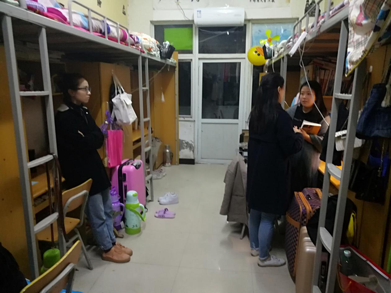 曲星颐老师与郭琳琳老师重点针对宿舍卫生,大功率电器进行了细致的检查,并对在检查中出现的问题进行了批评与指导,同时向学生强调了宿舍安全以及文明的重要性,对学生进行了安全文明教育。大多数宿舍总体表现不错,干净整洁,床铺上物品及其他生活用品摆放整齐,能给人一种温馨的感觉。当然也有部分宿舍卫生不乐观,地面不整洁,由于物品多,摆放就杂乱无序,宿舍存在卫生死角。针对上述问题,曲星颐老师和郭琳琳老师在检查过程中对问题宿舍进行思想教育,同时做了记录并要求学生给出说明。