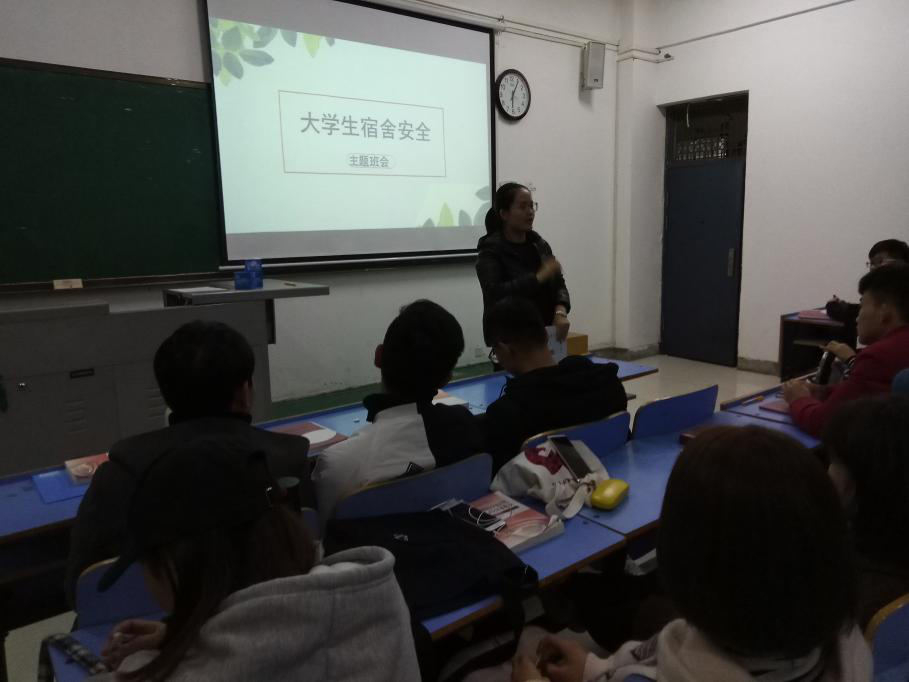 11月 19日,太阳成集团tyc9728于艺术楼 A406召开“宿舍安全教育”的主题班会,由团总支副书记(学工办副主任)袁立文主讲, 16级全体学生参加。