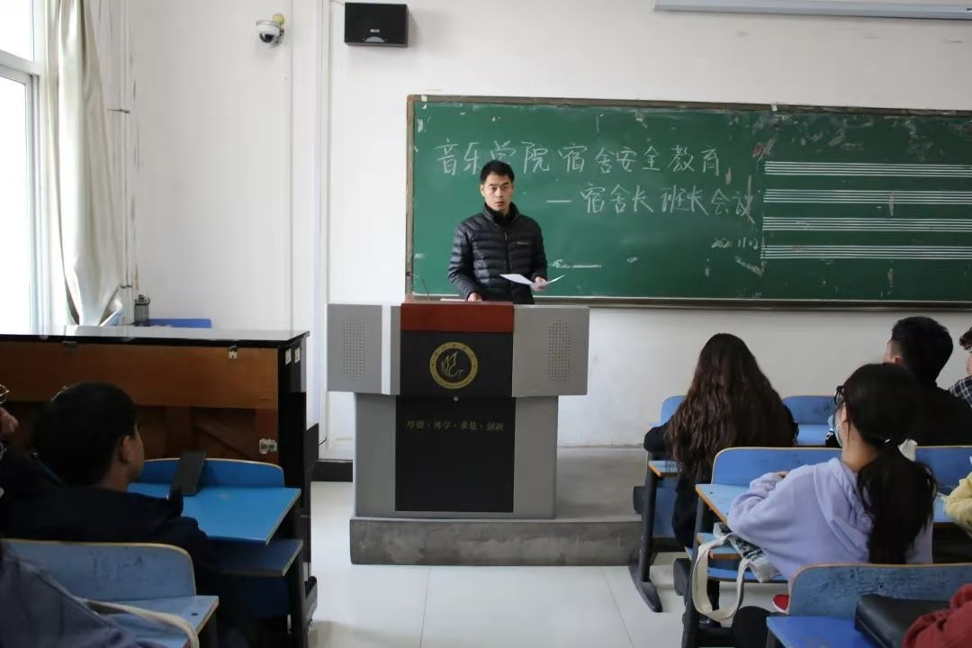 为贯彻落实常态化疫情防控措施,加强学生宿舍安全、卫生教育和管理,引导学生树立安全意识,养成良好卫生习惯,确保宿舍安全稳定,卫生健康,音院即日起开始宿舍卫生治理及加强宿舍安全教育工作。我院辅导员曹大兵老协同宿管部成员2020年11月2日中午于艺术楼A311召开了全院宿舍长会议。