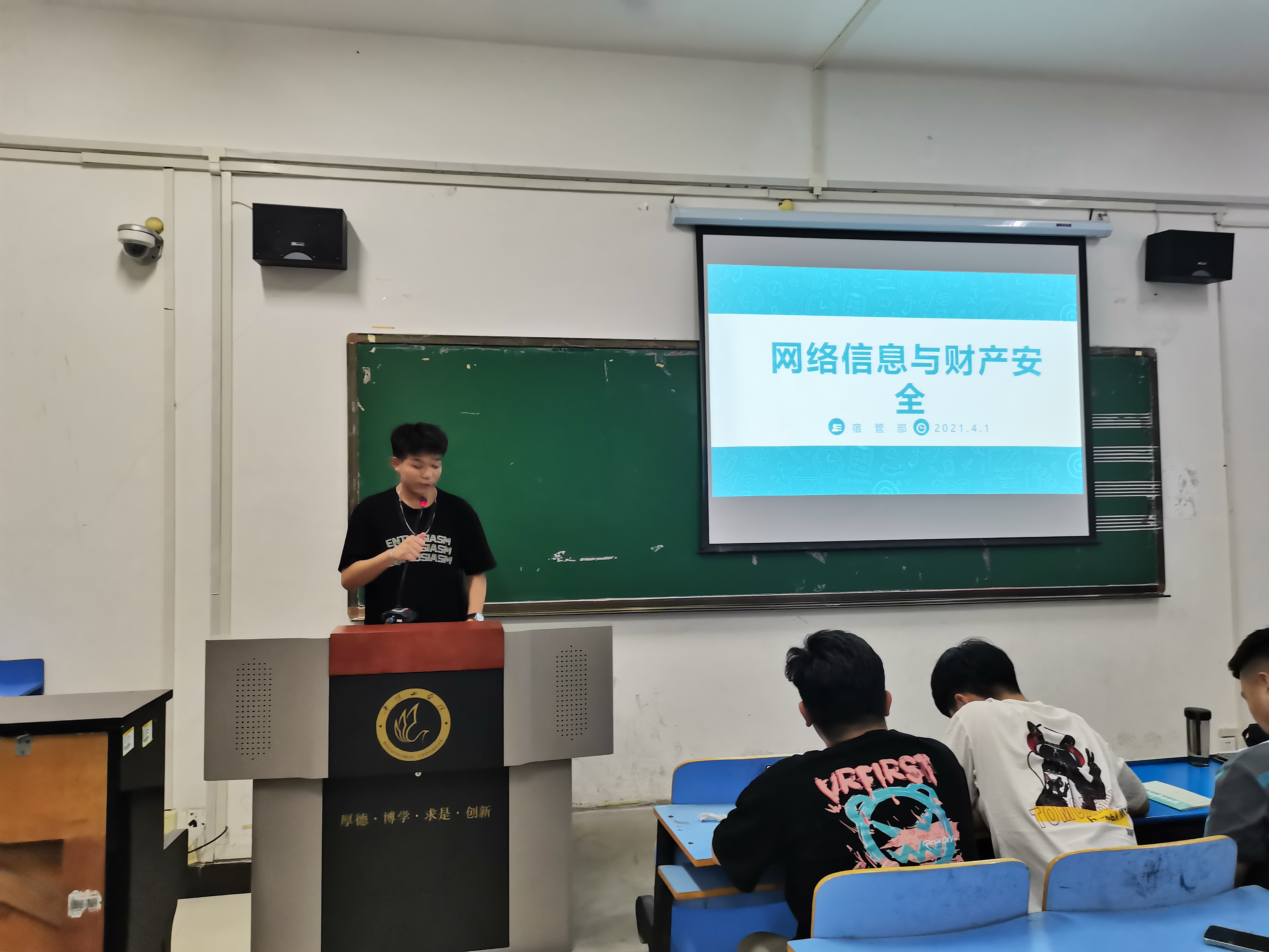 活动开始,由我院辅导员曹大兵老师介绍安全教育的重要性,然后由音乐团学会的各个部门围绕安全教育的各个方面开展讲述。其中,我院文体部以社会治安的角度介绍安全教育,学习部讲解校园贷危害,还有组织部,权益部等部门负责讲述电信诈骗等主题的宣讲。在每个部门讲解安全教育的时候,曹大兵老师和我院团学会主席团成员也会对他们的讲解提出一些问题,指出他们的不足之处。