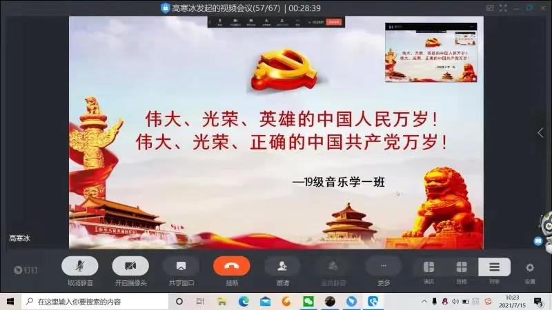 在会议中,各班辅导员依据中国共产党的百年党史为同学们讲解习近平总书记“七一”重要讲话精神,嘱咐同学们要不忘初心、牢记使命,以实际的行动贯彻社会主义核心价值观,同时要求同学们要牢记历史,吸取历史经验,争做一名符合时代要求的青年大学生,同学们也纷纷发言,表达自己对习近平总书记“七一”重要讲话精神的理解感悟,有的同学亲手绘制了“我爱你中国”的标语,最后各班由班长带头歌唱《我和我的祖国》等歌曲。