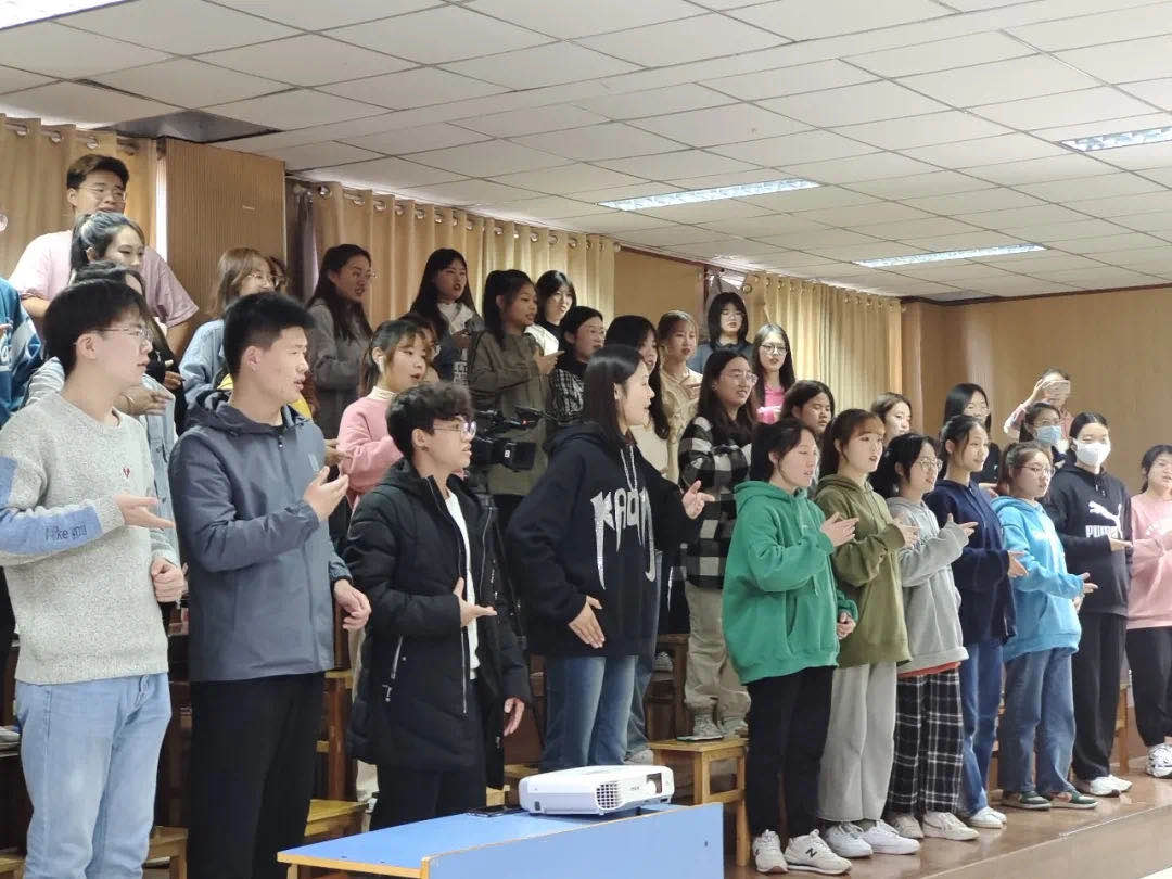 楚淑珍老师生动形象的讲解使同学们对戏曲文化产生了非常浓厚的兴趣,为了使同学们能够更进一步的了解豫剧文化并真正融入到弘扬传统文化的氛围中,楚老师带领着同学们进行了《花木兰选段——谁说女子不如男》和《刘胡兰》的戏曲片段的学习,充分调动了学生们对于学习豫剧的积极性。随后,楚淑珍老师还挑选几名同学现场教学戏曲的手势和动作,让同学们深深感受到了戏曲的魅力。