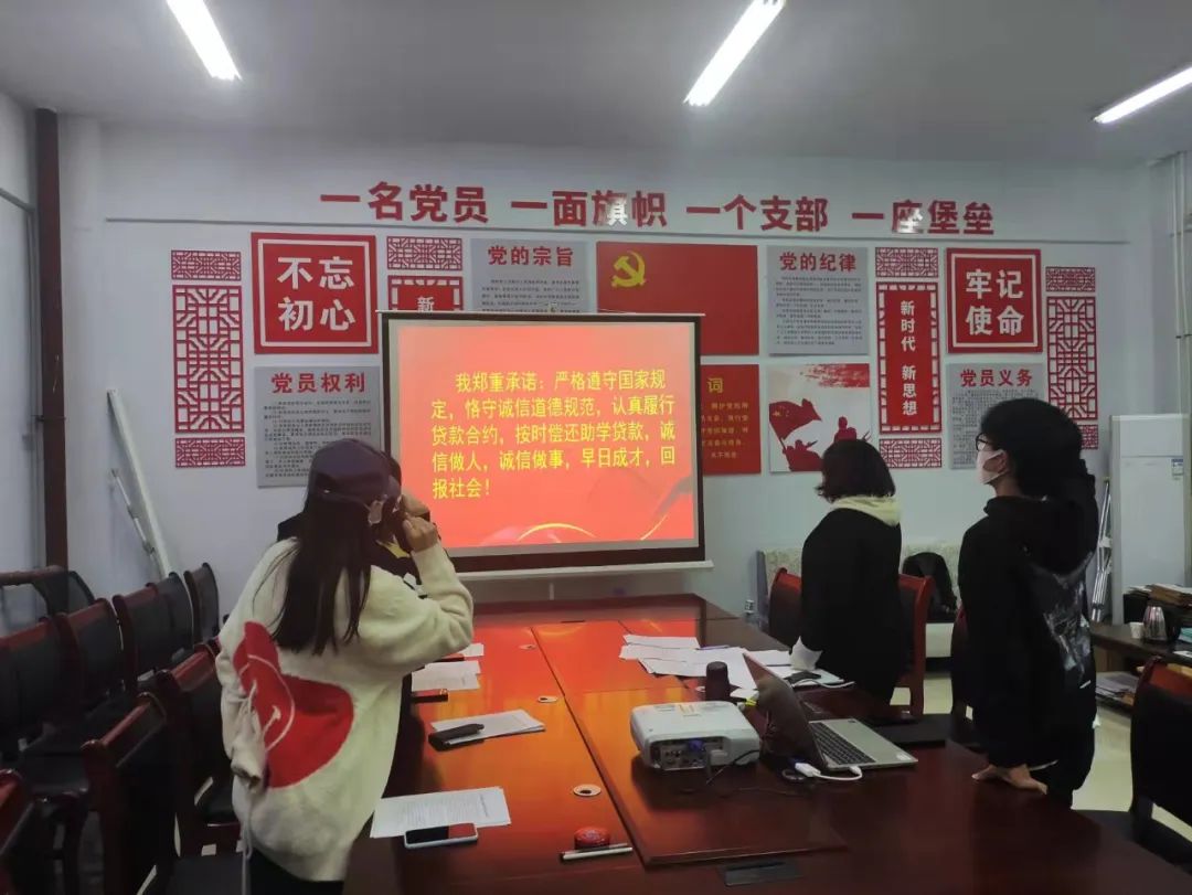 为响应国家助学贷款资助相关政策,倡议学生“诚信待人,诚信处事,诚信求学,诚信还贷”,太阳成集团tyc9728权益部在A301开展了“人之所助者信”诚信还贷教育主题宣讲会,本次会议邀请了21级辅导员李新梦老师前来观看指导。