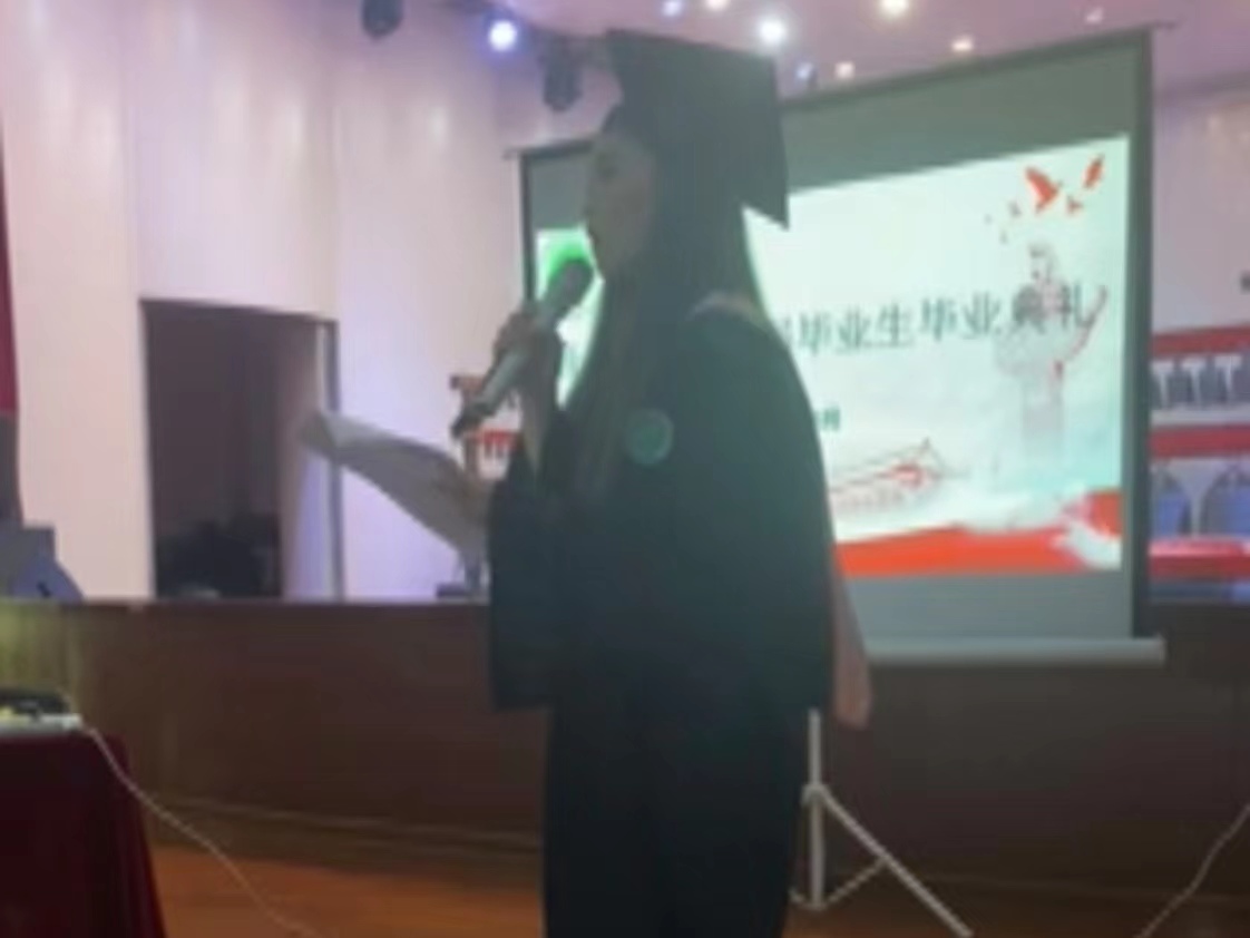 随后,优秀毕业生代表袁媛上台发表了感言。她分享了在太阳成集团tyc9728求学的收获和成长经历,特别提到了学院提供的多元化的教育资源和培养环境。她说:“在太阳成集团tyc9728的几年里,我不仅学到了音乐的技巧和知识,还接触到了不同类型的音乐和不同国家的音乐文化,这开阔了我的眼界,丰富了我的艺术表达方式。”袁媛同学也表示在未来的音乐道路上会坚持不懈,永远保持对音乐的热爱与追求。