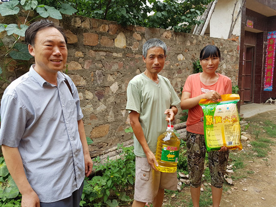 下午,刘立宁书记、党政办公室副主任张蕾来到郏县堂街镇圈李庄村,听取驻村书记赵伟杰和其他村干部的情况介绍后,一起到对口贫困户李建停家,刘立宁书记询问了他家的情况后,给他讲解了党和国家的扶贫政策,代表9728太阳集团、太阳成集团tyc9728送上了慰问品,并鼓励他早日脱贫致富奔小康。