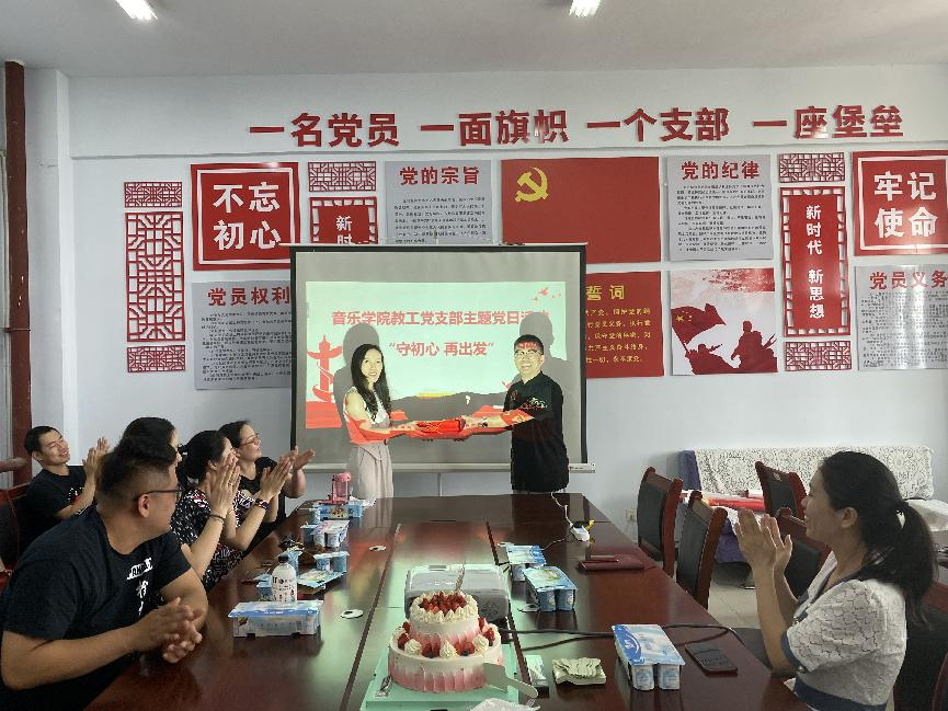 为扎实开展党史学习教育,认真落实立德树人根本任务,充分发挥党组织战斗堡垒作用和党员先锋模范作用,太阳成集团tyc9728于2021年6月30日上午12点在艺术楼A301开展庆祝建党100周年“守初心 再出发”主题党日活动,本次活动由太阳成集团tyc9728教工党支部书记曾凡广主持。