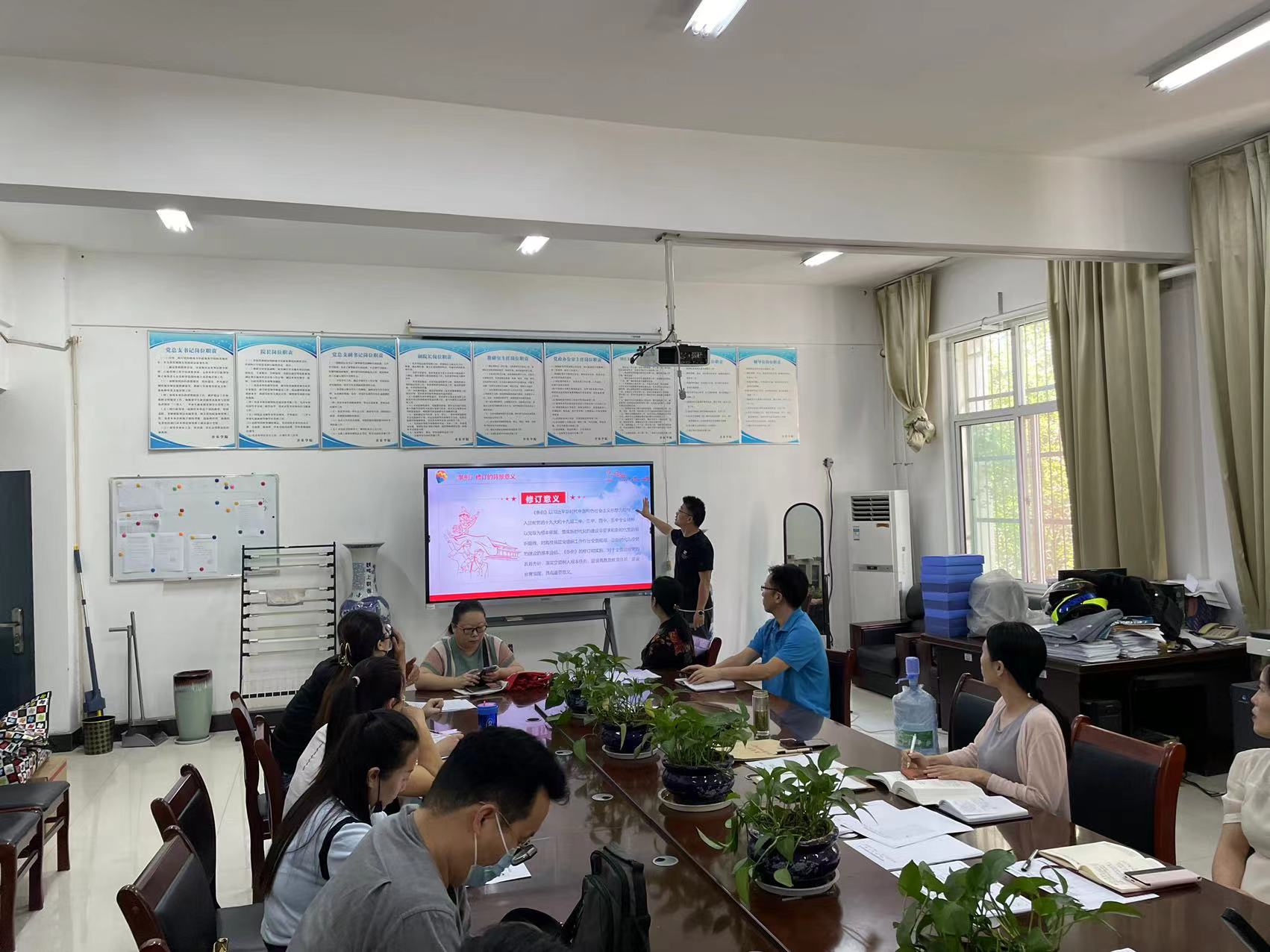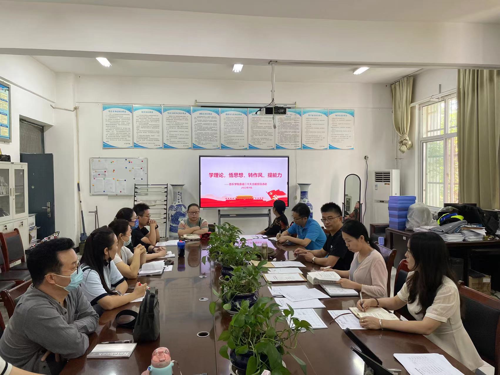 9月29日下午,太阳成集团tyc9728教工党支部组织开展“学理论,悟思想,转作风,提能力”主题党日活动,为迎接党的二十大胜利召开营造良好氛围。会议由太阳成集团tyc9728党委副书记潘刻科主持,教工支部全体党员同志参加。