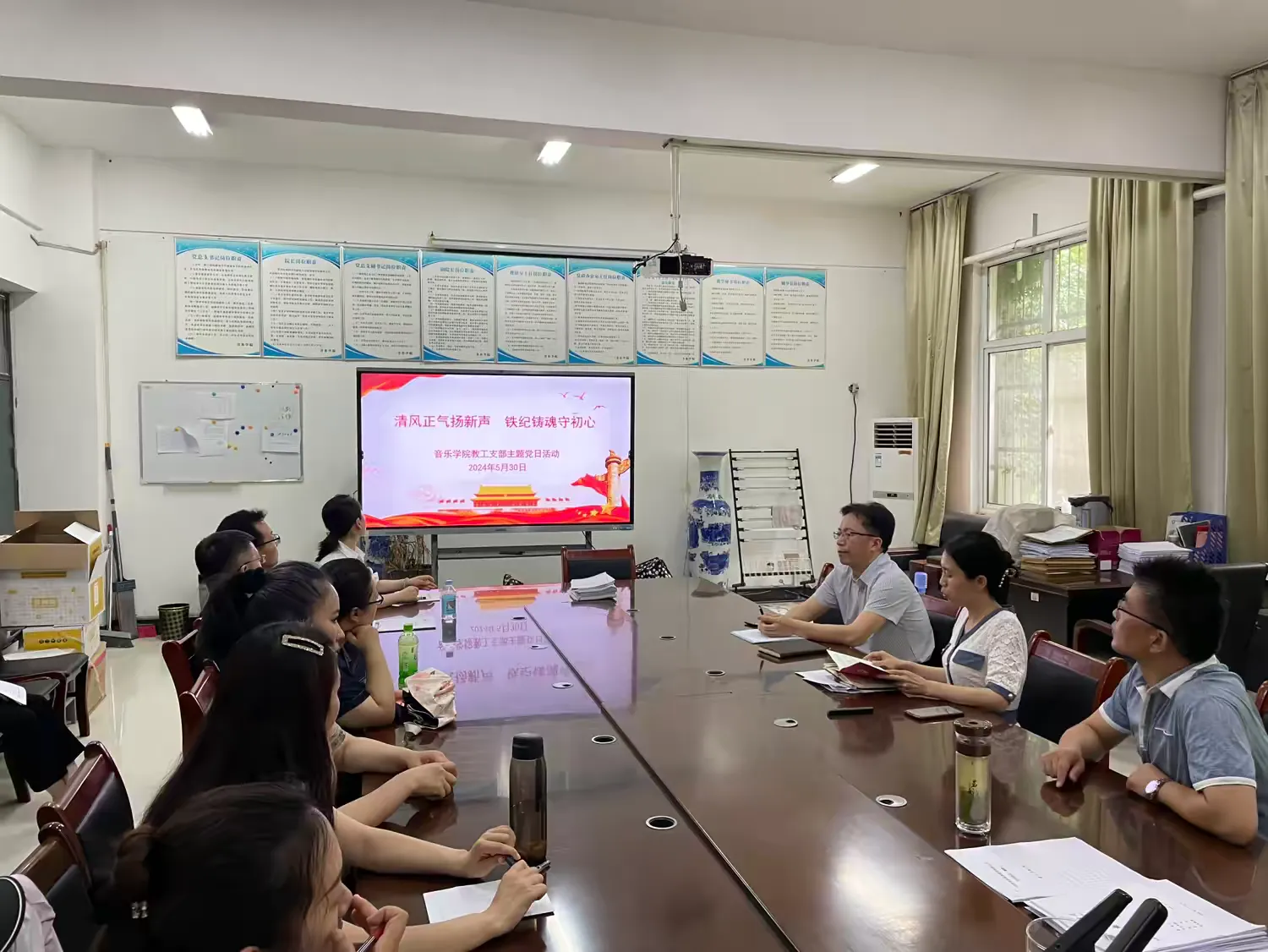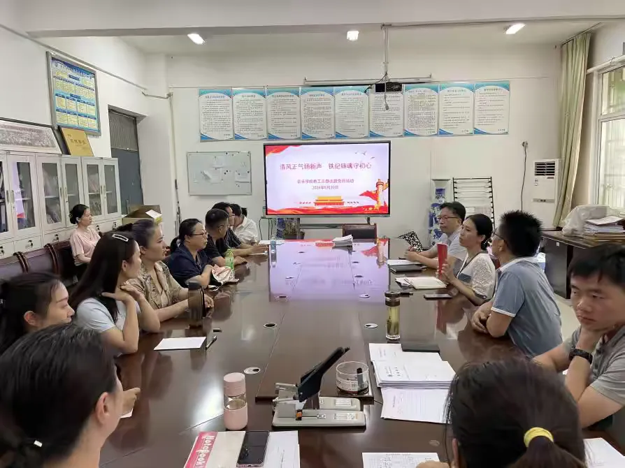 2024年5月30日下午,太阳成集团tyc9728教工支部在艺术楼A105办公室开展以“清风正气扬新声,铁纪铸魂守初心”为主题的党日活动,活动由太阳成集团tyc9728教工支部书记曾凡广主持,全体教工党员、科级干部和党外人士教师代表参加活动。