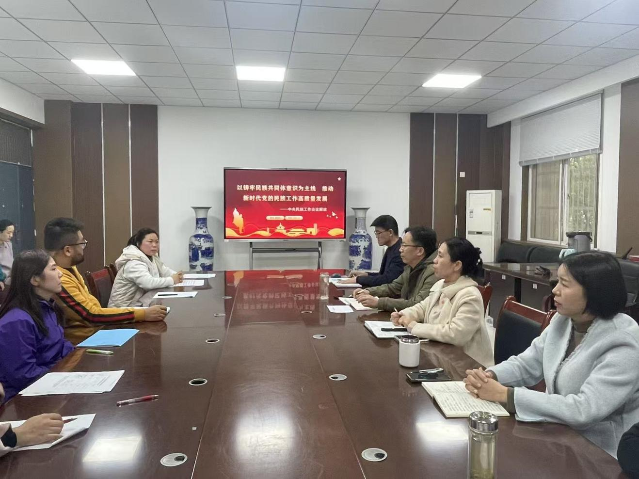 首先,党委副书记姜星带领全体党员学习《习近平:中华民族共同体的形成和发展是人心所向、大势所趋、历史必然》重要论述,并围绕“历史逻辑、理论逻辑、实践逻辑”三个维度展开深度解读,他讲到,从历史逻辑看,中华民族共同体是各民族在长期交往交流交融中自然形成的命运共同体,是历史发展的必然结果;从理论逻辑看,铸牢中华民族共同体意识符合马克思主义民族理论基本原理,是新时代民族工作的核心要义;从实践逻辑看,只有凝聚各民族力量、增进民族认同,才能为实现中华民族伟大复兴提供强大支撑。