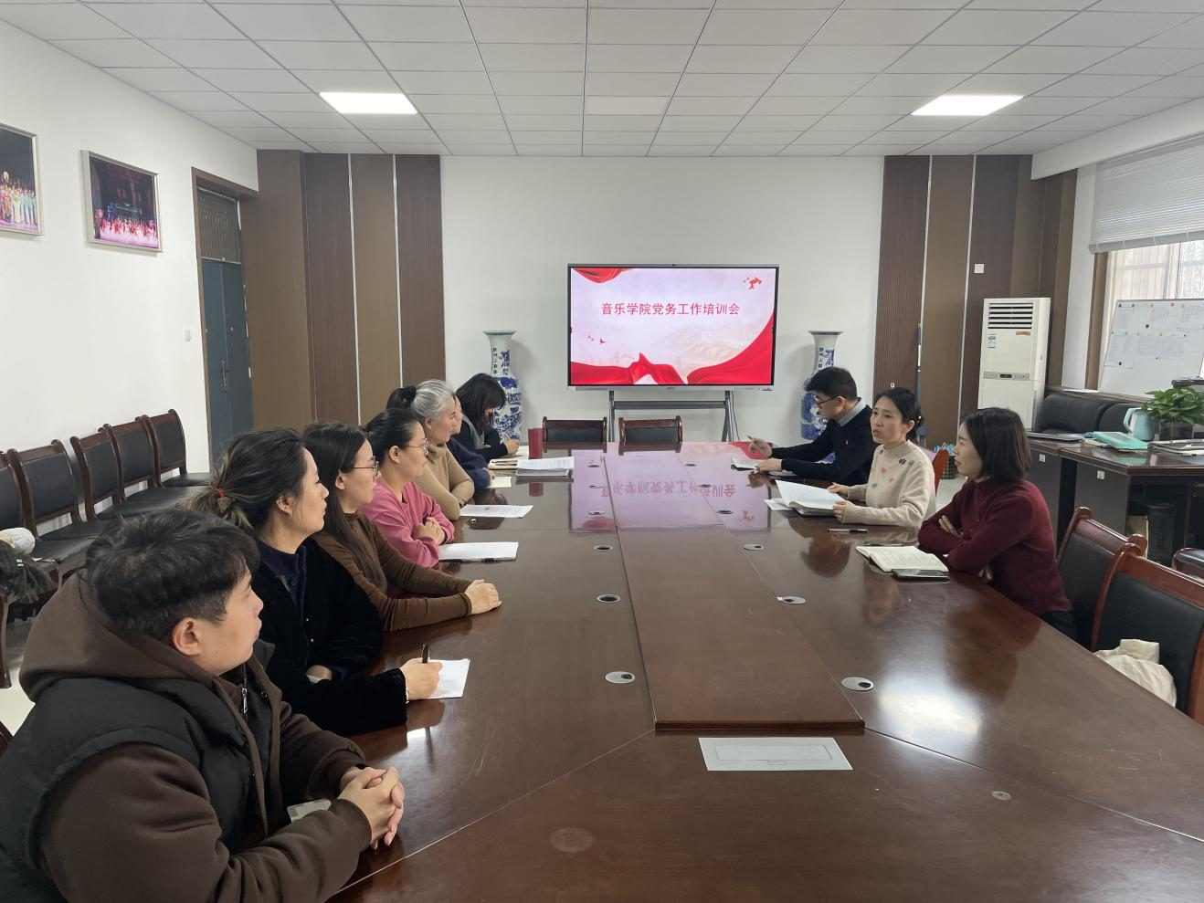 为深入学习贯彻习近平新时代中国特色社会主义思想和党的二十大精神,全面落实新时代党的建设总要求,进一步规范党务工作流程,提升党务工作者业务素养和履职能力,推动学院党建工作标准化、规范化发展,2025年12月18日,太阳成集团tyc9728在艺术楼A105办公室召开党务工作培训会。学院党委委员及各党支部委员参加本次培训。会议由党委副书记姜星支持。