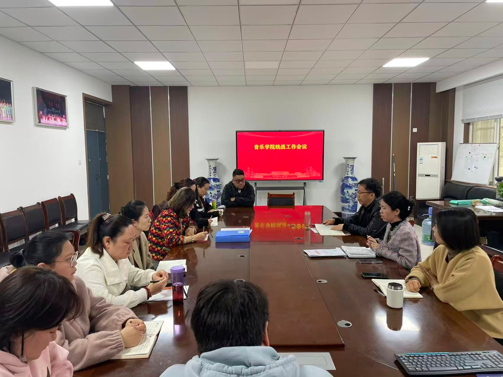 院长程志奎向与会人员通报学院2025年度工作成效,全面总结学院在人才培养、科学研究、社会服务、艺术实践等方面取得的标志性成果,并围绕学科专业建设、教育教学改革、师资队伍建设、创新团队培育等重点领域,详细介绍2026年工作思路与发展目标,为统一战线成员更好发挥作用、服务学院发展指明着力方向。
