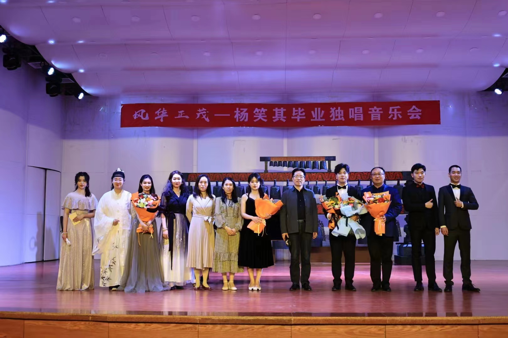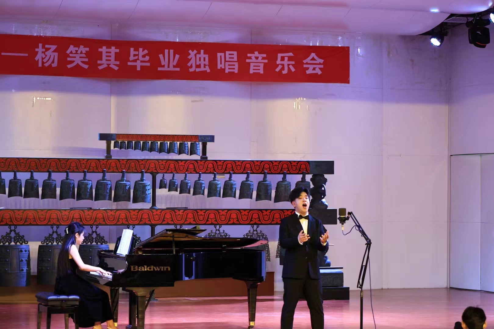 正如他在音乐会结束后的感言:“我今后一定会在这条道路上更加努力,牢记老师对我的教导,持续完善自己,踏实虚心学习,愿未来可期!”虽然这是一场毕业音乐会,但也是他人生一个新的起点。杨笑其同学正是用他的歌声,深深表达了对母校和老师的留恋和感恩之情。此次毕业音乐会的成功举办,不仅是学生对自己专业学习的检验和总结,也是为老师们的四年培养和指导,交出了一份完美毕业答卷,愿学生在今后的发展道路上步步高升。