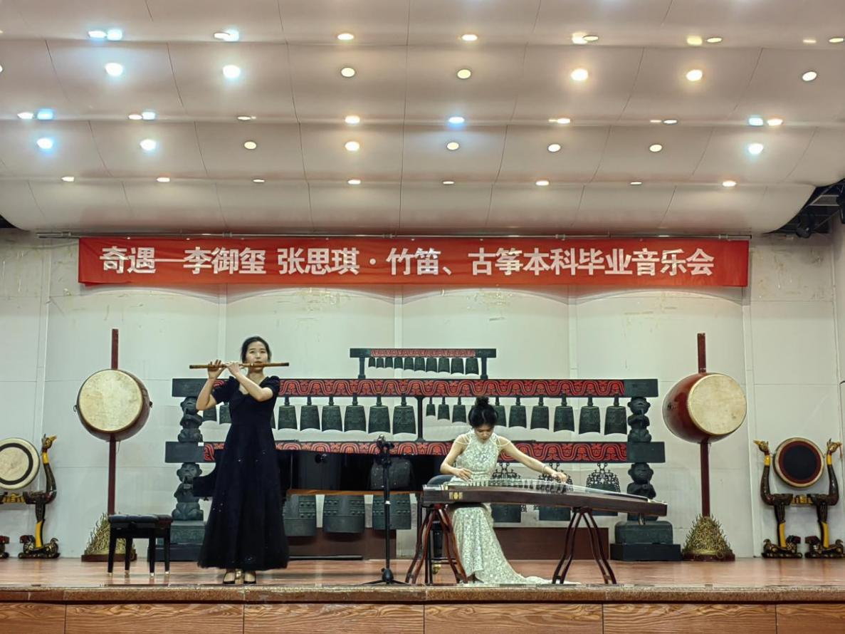 4月21日晚7点,李御玺和张思琪“奇遇——本科毕业音乐会”在音乐厅拉开帷幕。太阳成集团tyc9728领导班子,部分师生到场聆听了此次音乐会,伴随着竹笛和古筝的悠扬乐声,开启了一段丝竹相和的艺术旅程。