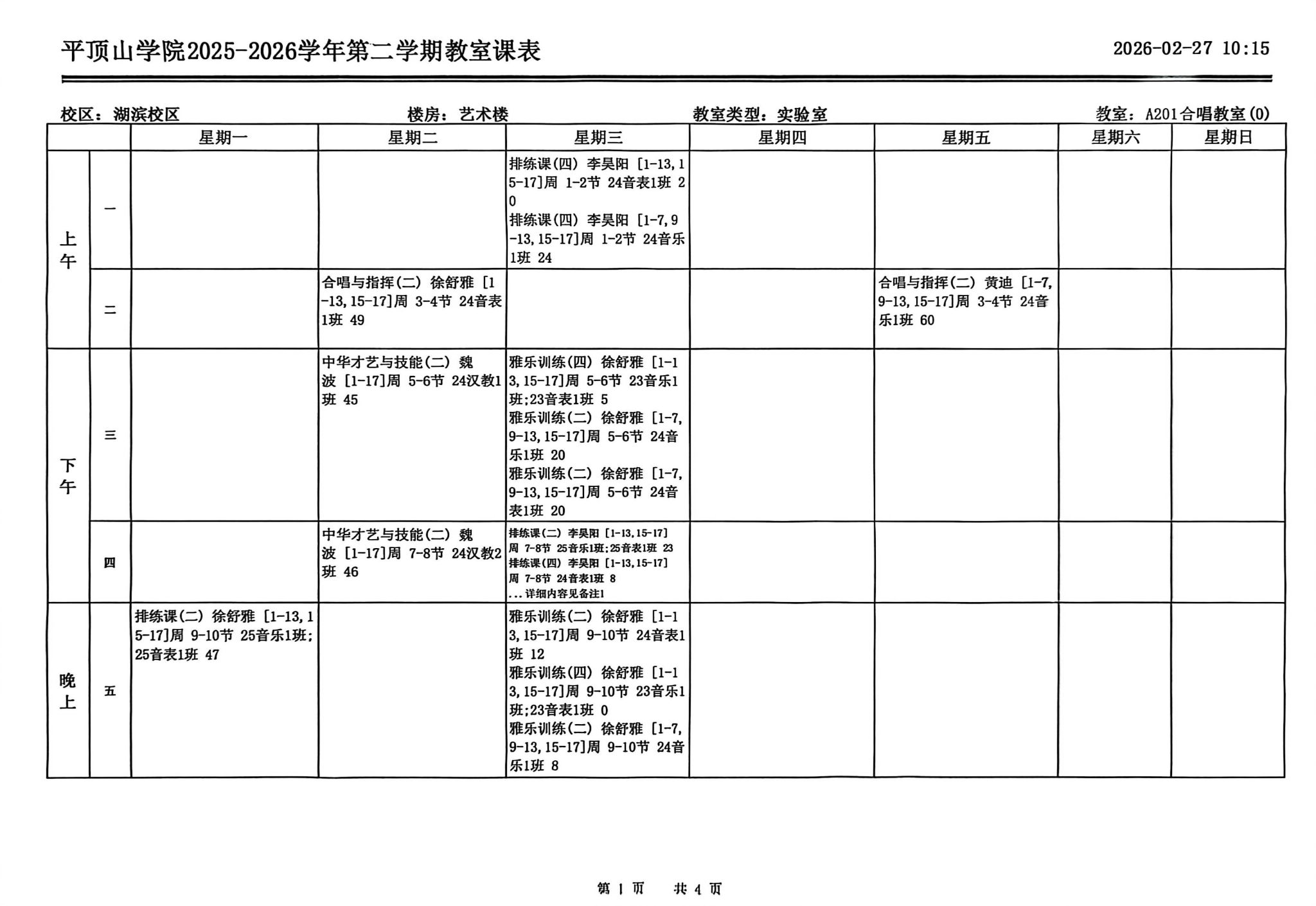 房间号及责任人:A201 黄丹