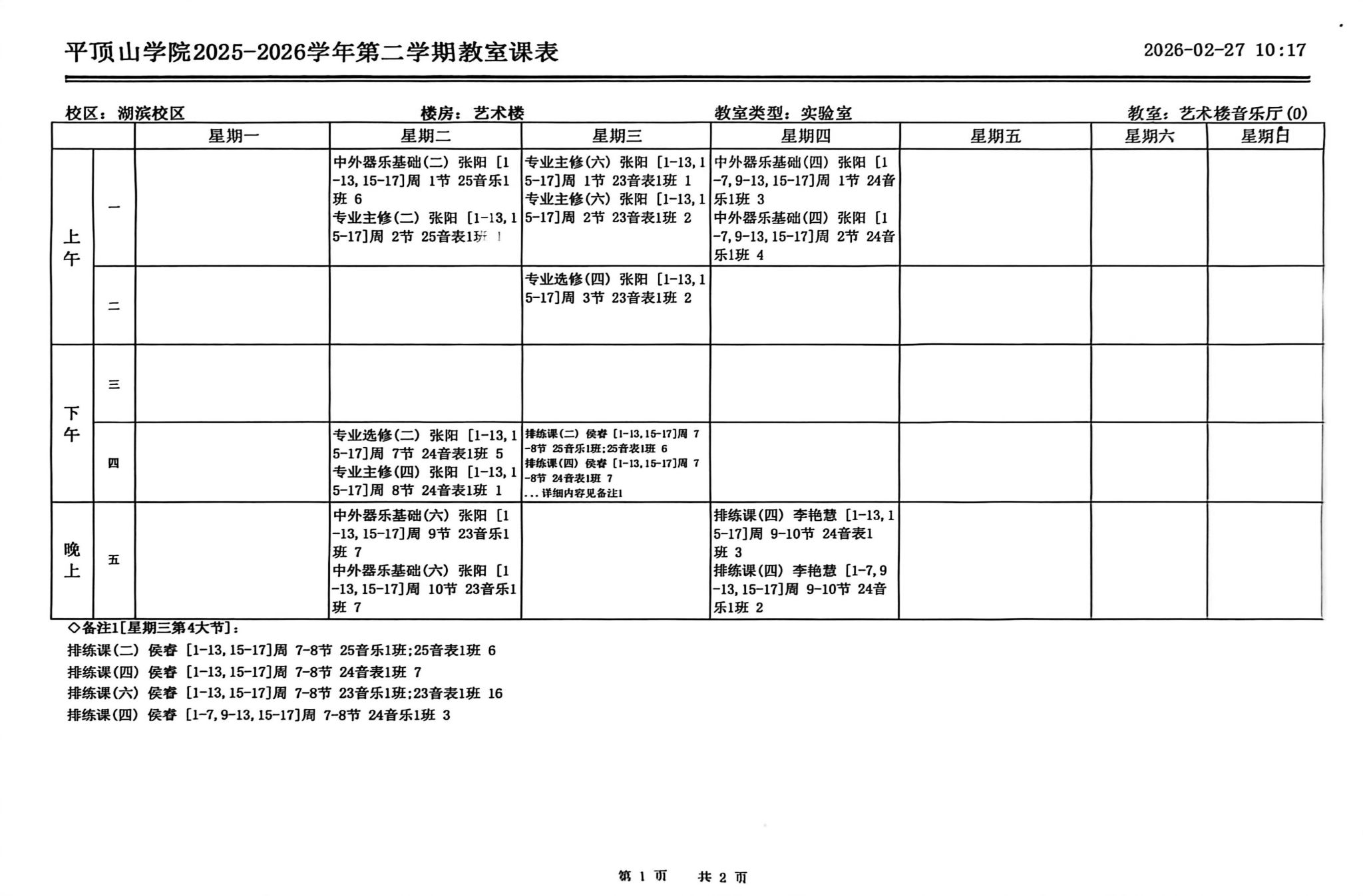 房间号及责任人:音乐厅 黄丹丹