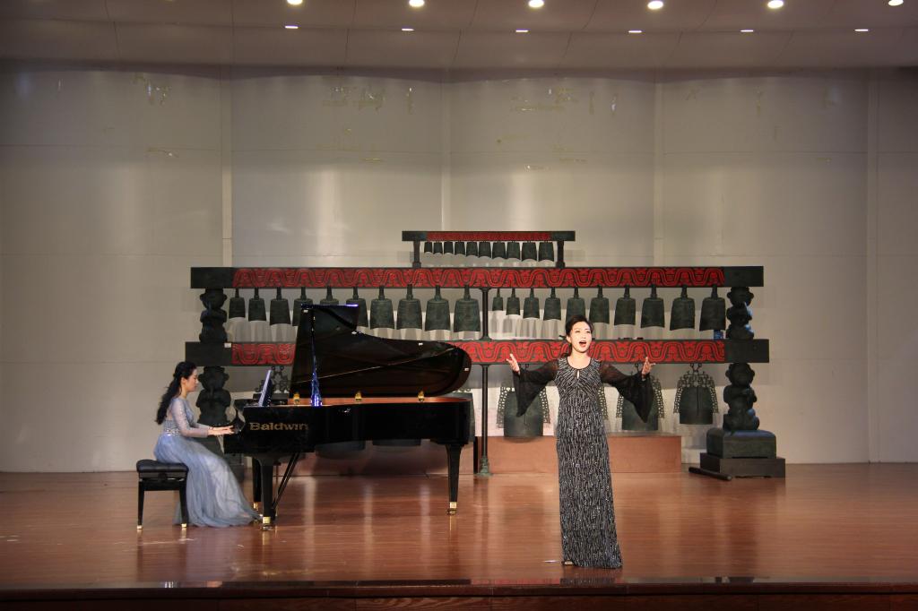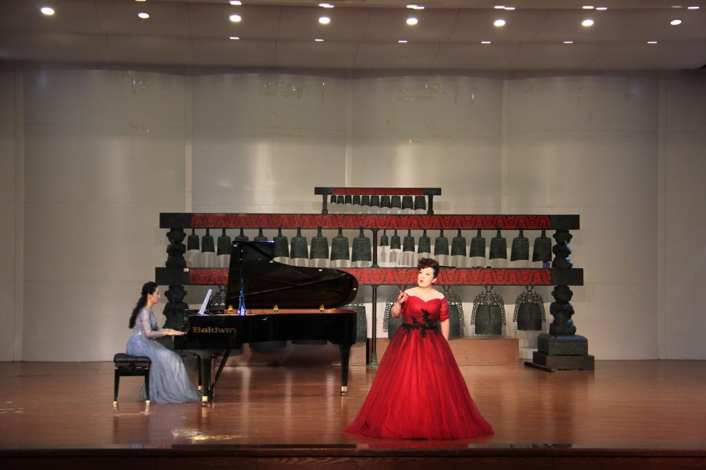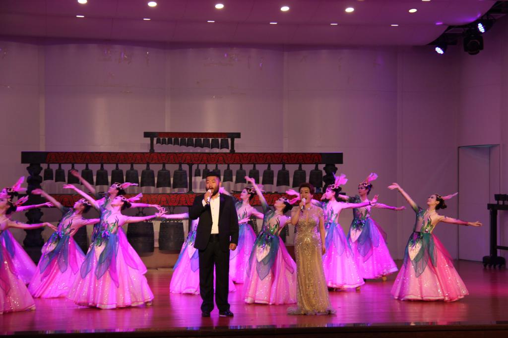 迎新音乐会在汤丽老师《敕勒歌》悠扬的歌声中拉开了帷幕,十五位声乐教师先后为同学们献上了《西部放歌》《沸腾激动的心灵》《父亲的草原母亲的河》《为艺术,为爱情》《耳边想起他的声音》《维莉亚之歌》等中外艺术名曲和歌剧选段,演唱曲目各具特色,时而轻柔舒缓、时而高亢激昂。老师们运用独特的声音品质、饱满的演唱激情,力求将美妙动听的声音和最赋表情达意的肢体语言传递给在场的每一位观众。李翔编排的舞蹈《水之灵》歌舞交融,使现场观众报以经久不息的掌声,最后音乐会在毕林子编舞、刘文宗和刘永娇演唱的歌伴舞节目《再一次出发》的歌声中落下帷幕。