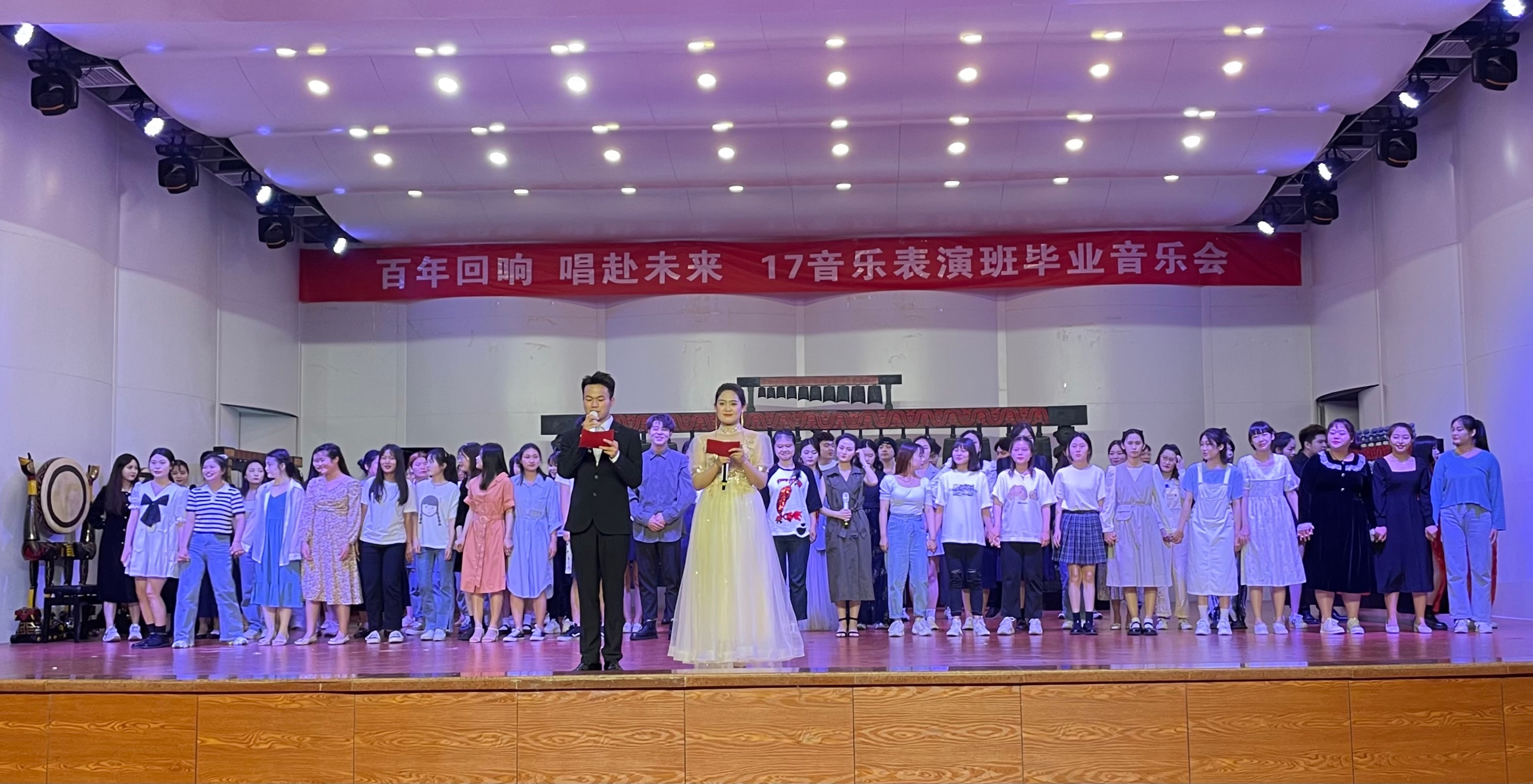 5月11日晚七点,太阳成集团tyc9728在我校音乐厅举行了“百年回响 唱赴未来” 2017级音乐表演专业毕业音乐会。该活动由音乐表演教研室和实践教研室共同承办,太阳成集团tyc9728党政领导班子和全体师生到场观看了音乐会。